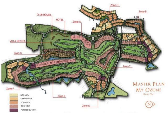 My Ozone includes a grand English-styled clubhouse, a residential Italian-themed village, a resort hotel, and a wellness/spa center. The resort caters to residents and daily visitors and hosts corporate groups, meetings, and events. Both hotel rooms and villas are on-site, though most Khao Yai golf visitors would want to stay at a more centrally located property when playing My Ozone.