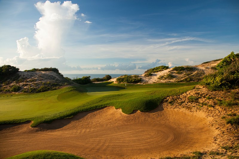 While the highest point of the rugged, windswept property is 50 meters above sea level, on the 15th green, one of the most spectacular spots comes earlier in the round, on the signature 4th hole. From here players are treated to a spectacular 360 degree view, including the course itself, the lush surrounding forest and wildlife, the expansive Vietnam coast, and the Grand Ho Tram Strip, Vietnam's first integrated casino and golf resort.